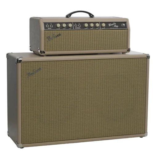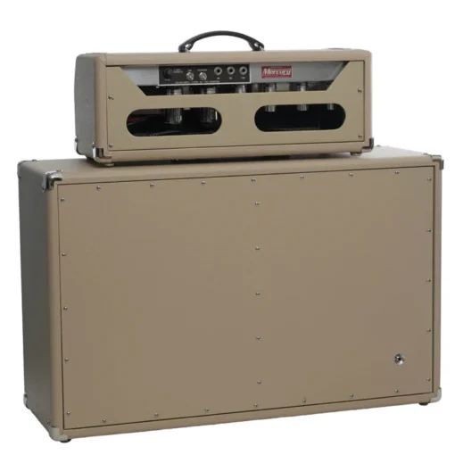 Klassisches Aussehen und Ton, 2X12 (Celestion Vintage 30s)-Box, 50-Watt-Röhrenkopf, Schaltung mit einer Anlehnung an einen Vintage 60er-Jahre-Design, 2 x 6L6-Leistungsröhren, Mercury Magnetics-Transformatoren, zwei Kanäle, cremefarbenes Tolex, professionelle Ausrüstung aus Tennessee