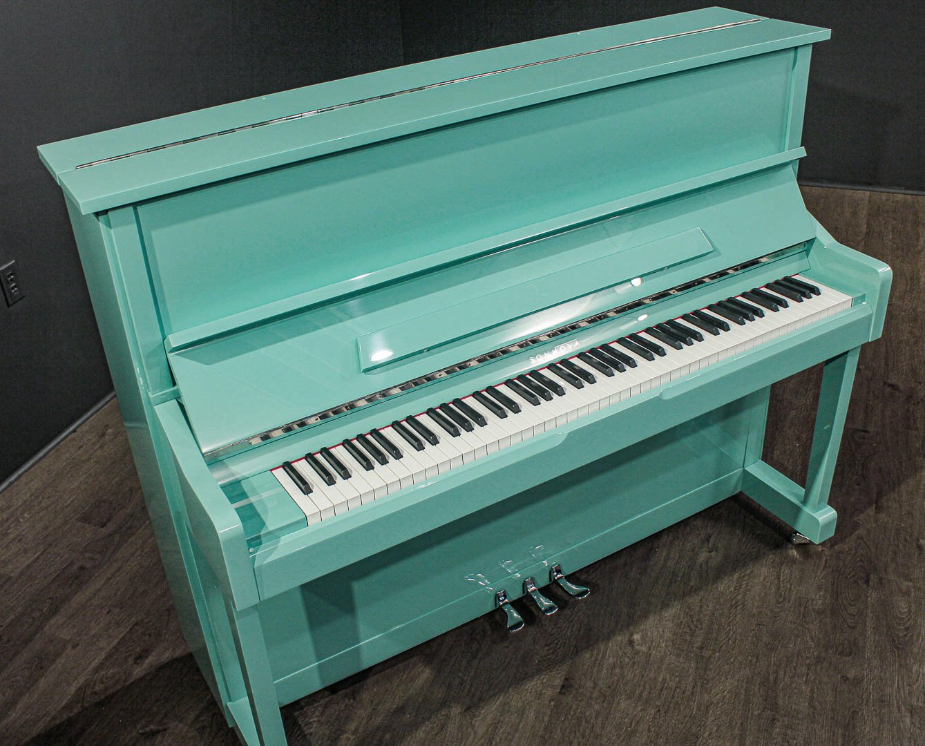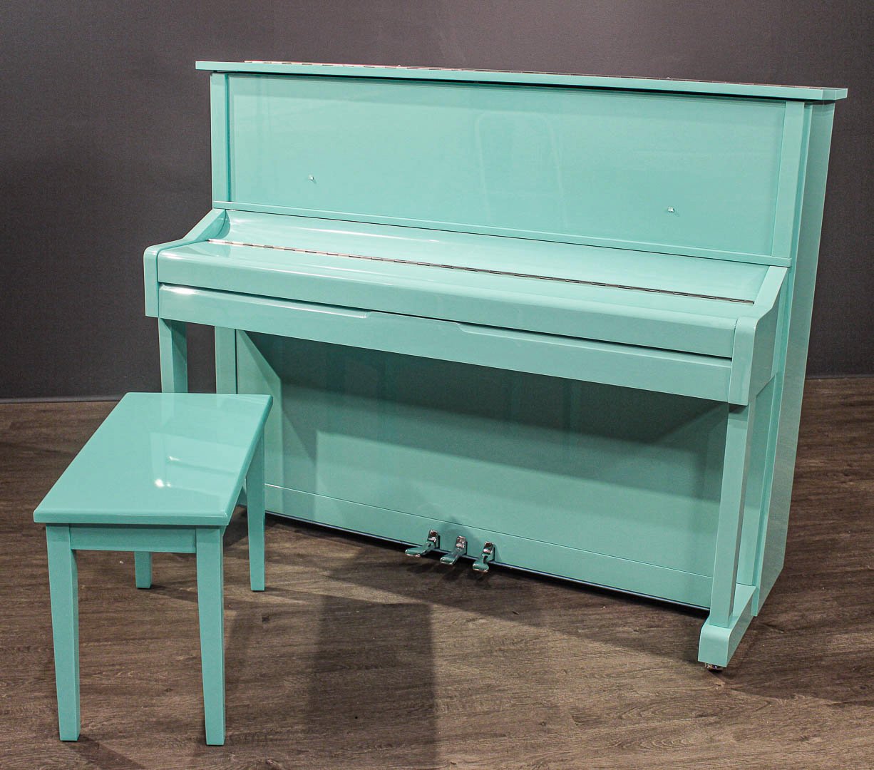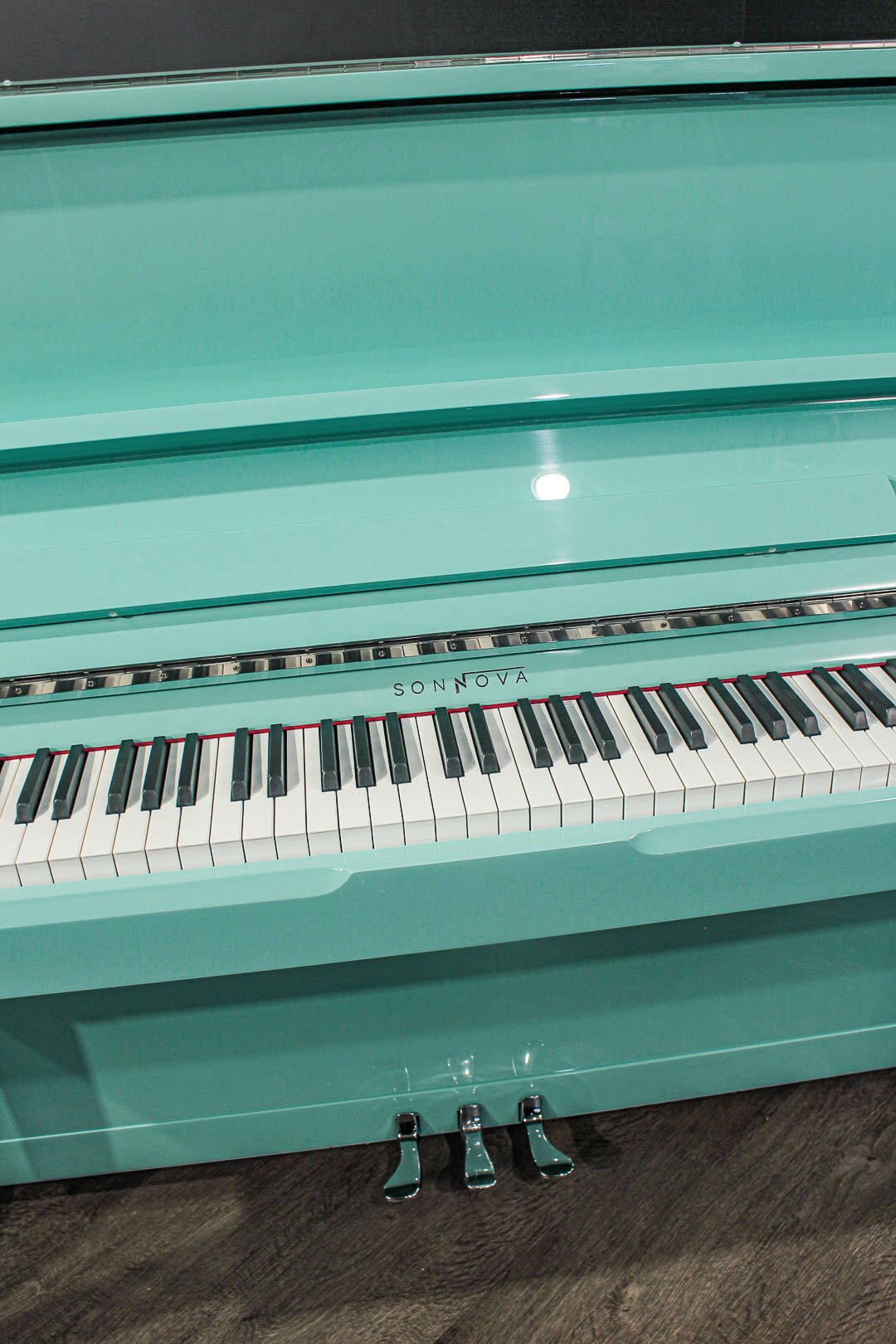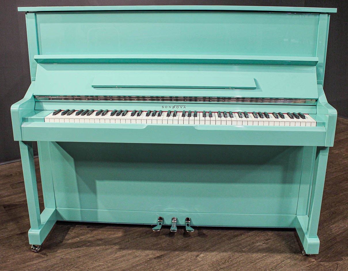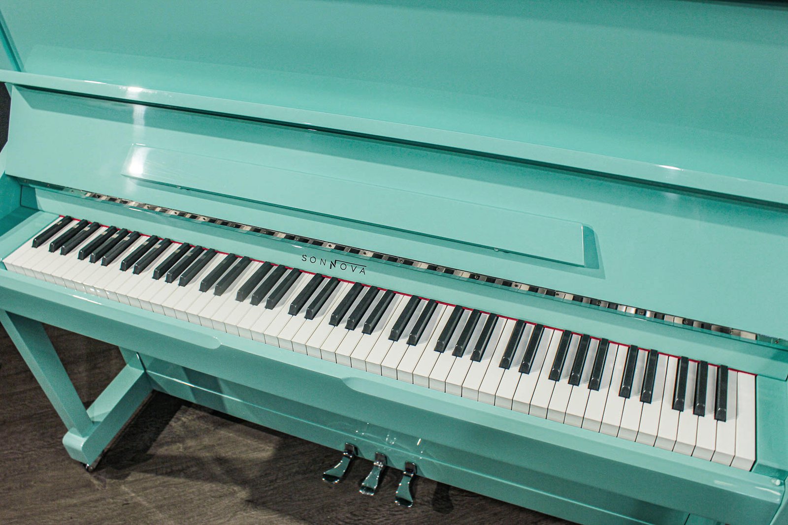 Das Sonnova U48 Studio Klavier kombiniert die Kraft, Eleganz und Leistung eines 48“-Studio-Klaviers in voller Größe mit einem klaren, modernen Design, das in jeden Wohnraum passt. Atemberaubendes hochglänzendes St. Lucia Blue Beenden, wunderschöne Pedale, Hardware und Akzente aus Nickel.
